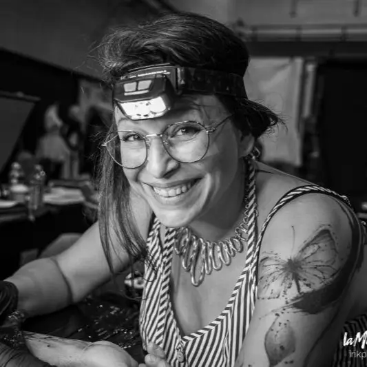 Evy de son nom d’artiste est diplômée des arts appliqués de Bellecour et de la prestigieuse école de design STRATE. Elle est experte du style fin line. Son travail est d’une finesse rarement égalée, toute en douceur et transparence, chaque élément ou texture est pensé et exécuté avec une grande précision. Tatoueuse engagée, elle est membre de l’association Soeurs d’encre qui oeuvre pour la reconstruction post mastectomie. Elle a un pouvoir d’écoute et d’observation hors du commun. Elle partage son savoir avec générosité et vous communique son remarquable enthousiasme.